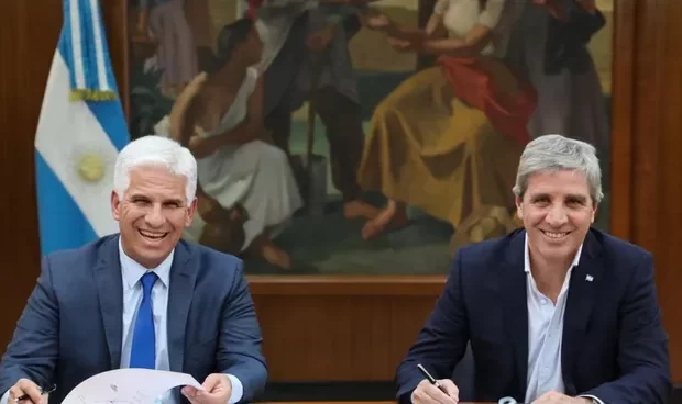 El ministro de Economía de la Nación, Luis Caputo, recibió al gobernador de San Luis, Claudio Poggi, en el Salón Scalabrini Ortiz del Palacio de Hacienda, donde firmaron convenios...